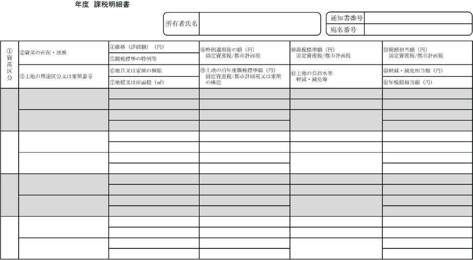 (1) 固定資産が次表の事由に該当することとなった場合は、当該固定資産の所有者に対し、その事由により定められた税額を軽減し、又は免除する。この場合において、減免する税額は、その事由に該当することとなった日の属する年度(当該年度の1月1日以後にその事由に該当することとなった場合は、当該年度及び翌年度)においてその事由に該当することとなった日以後に納期の末日の到来する税額とする。