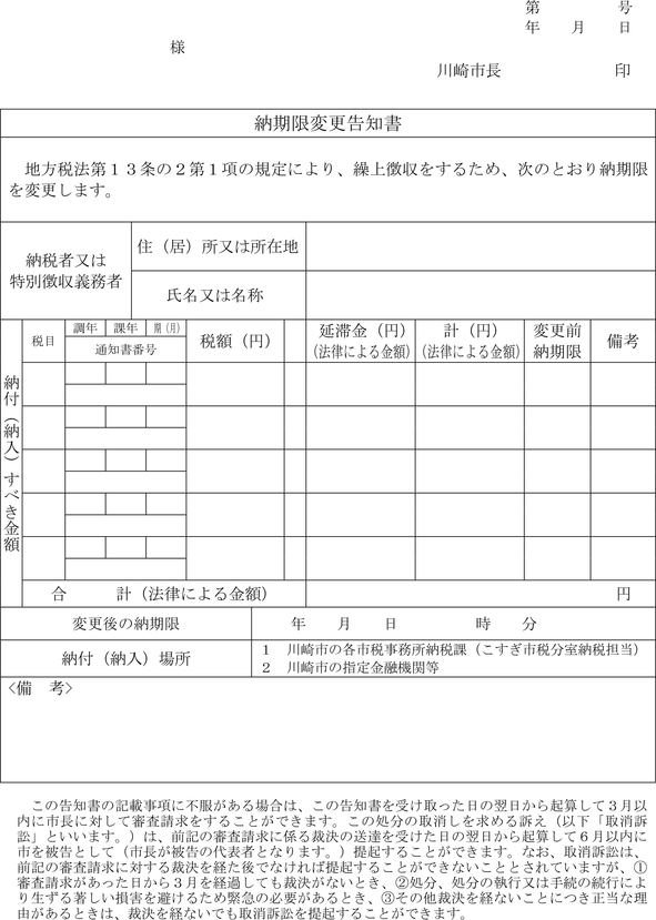 川崎市市税条例施行規則