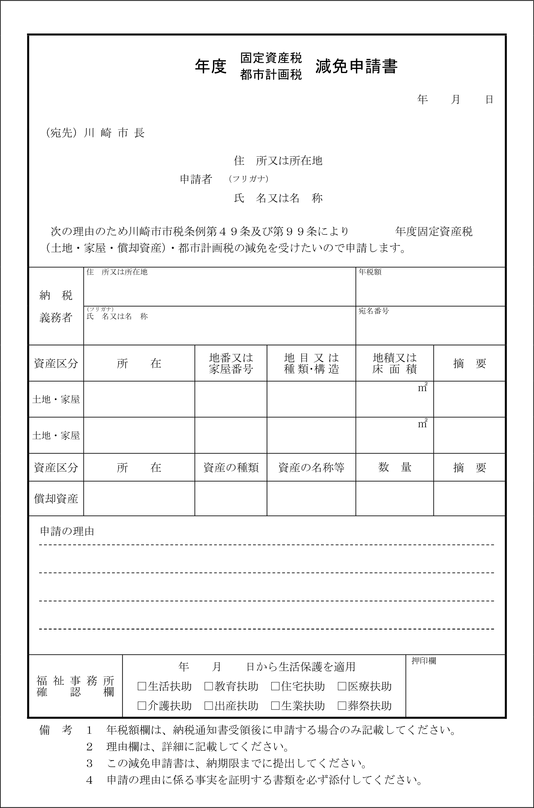 事業所税減免申請書