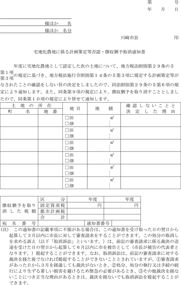 ○川崎市市税条例施行規則