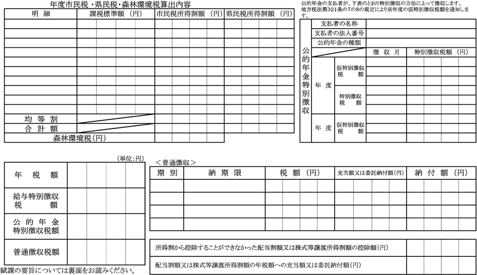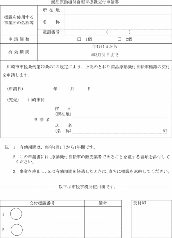 第2条 条例の規定により規則で定めるべき徴税吏員の証票、納税通知書、納付書、納入書、申告書、申請書及び標識等の様式は、別表に定めるところによる。