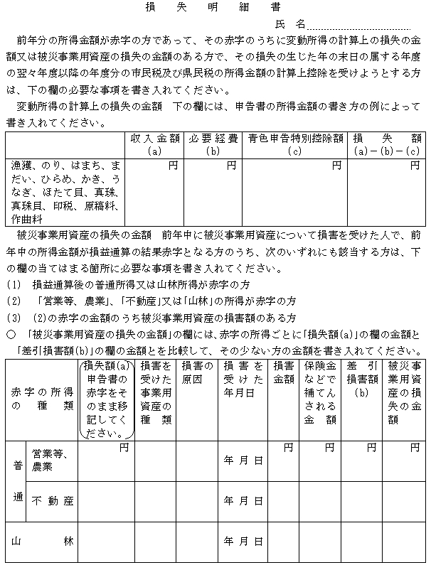 災害により自己(その者の同一生計配偶者及び扶養親族を含む。)の所有する住宅(その者の居住に係るものに限る。)又は家財に損害を受け、その損害(保険金、損害賠償金等により埋められた損害分を除く。)の程度が右の区分に該当することとなった場合