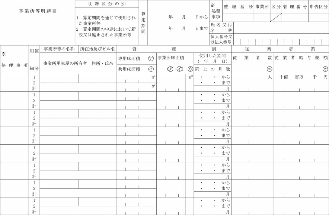 事業所用家屋の貸付状況明細書
