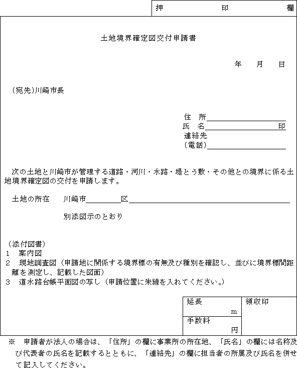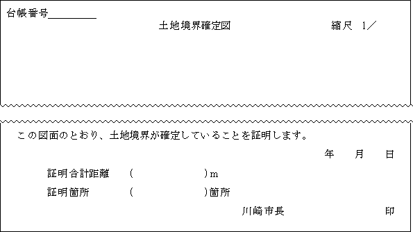 第16条 土地境界確定図の交付を受けようとする者は、土地境界確定図交付申請書(第4号様式)を提出し、土地境界確定図(第5号様式)の交付を受けることができる。この場合、川崎市手数料条例(昭和25年川崎市条例第6号)第5条により実費として次の基準による料金を徴収する。