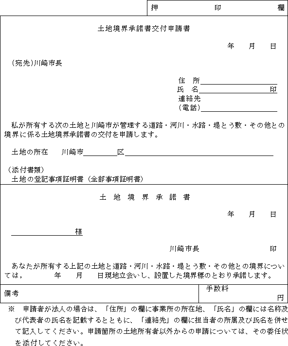 第17条 土地境界承諾書の交付を受けようとする者は、土地境界承諾書交付申請書(第6号様式)を提出し、土地境界承諾書の交付を受けることができる。