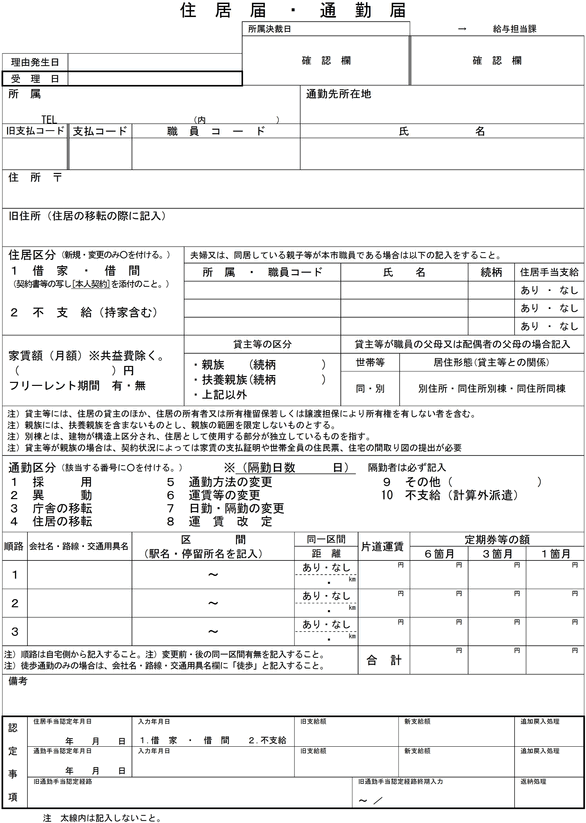 (1) 自ら居住するため住宅(貸間を含む。次号において同じ。)を借り受け、家賃(使用料を含む。以下同じ。)を支払っている職員