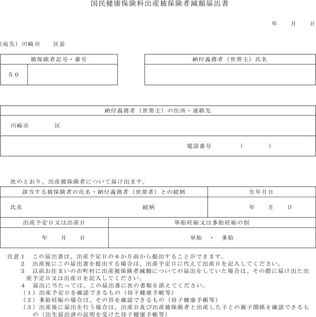 第12条 条例第32条の4第1項の規定による届出は、出産被保険者減額届出書によるものとする。