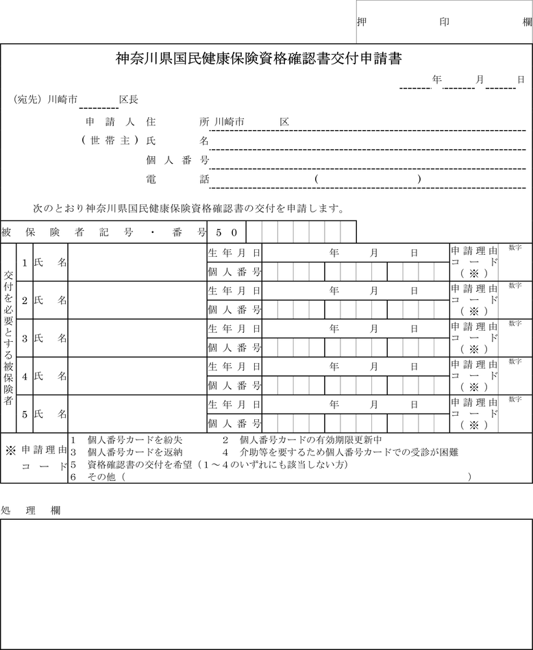 神奈川県国民健康保険資格確認書・資格情報のお知らせ再交付申請書