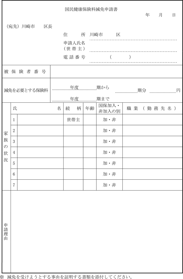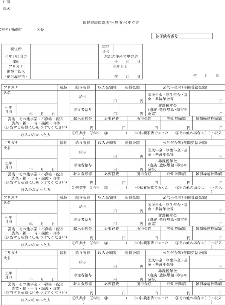 第13条 条例第33条の規定による申立ては、保険料減額のための所得(無所得)申立書によるものとする。