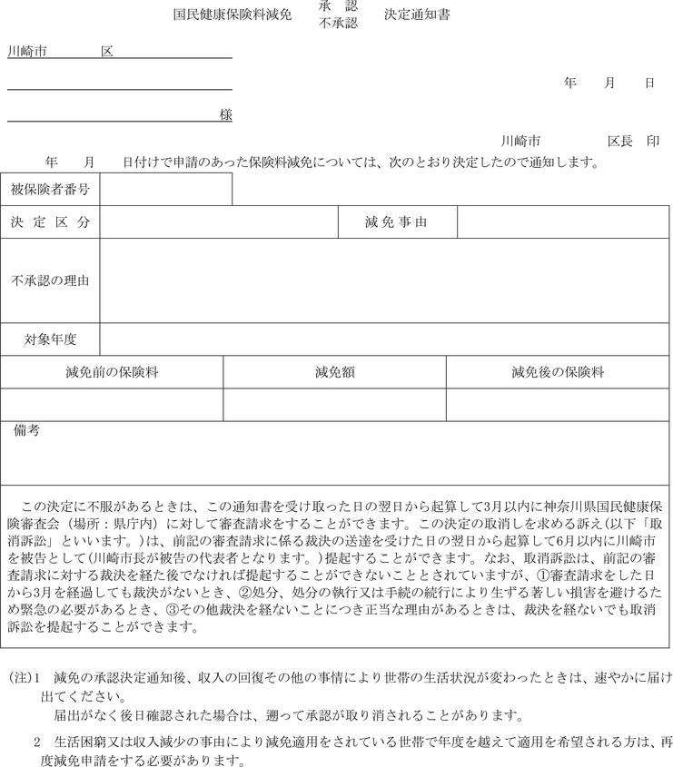 第16条 条例第39条第3項に規定する申請書の提出があったときは、区長はこれを審査し、その必要があると認めるときは保険料減免承認決定通知書を、不適当と認めるときは保険料減免不承認決定通知書を当該納付義務者に交付するものとする。