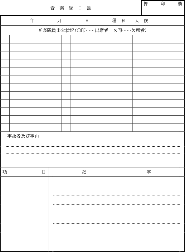 (2) 音楽隊日誌(第2号様式)