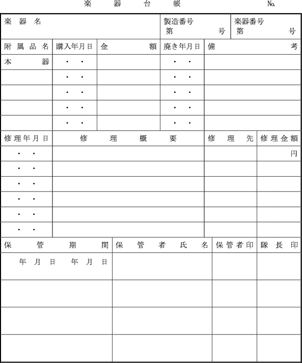 第15条 音楽隊に、次の簿冊をおく。
