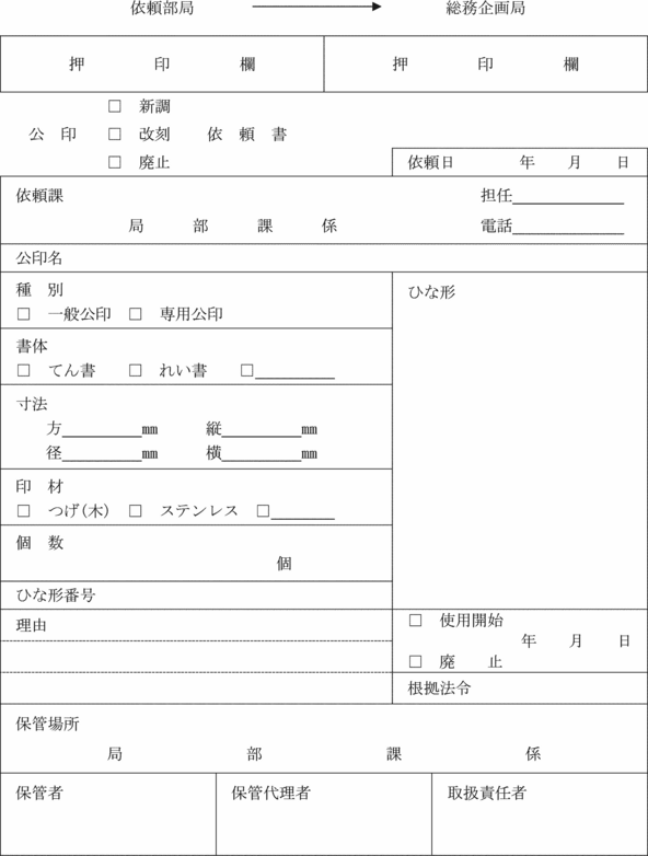 2 前項の場合は、公印新調、改刻、廃止依頼書(第2号様式)により総務企画局長に依頼しなければならない。