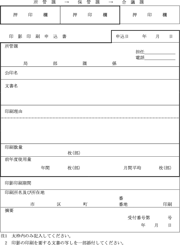 2 前項の規定により公印の印影を印刷しようとするときは、印影印刷申込書(第5号様式)により保管者に申し込み、その承認を得なければならない。