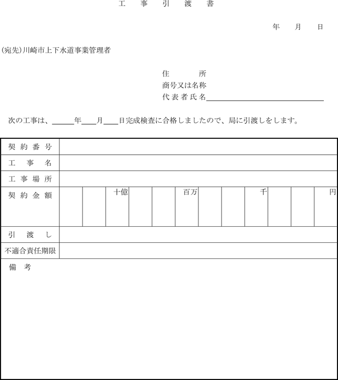 14 | 工事引渡書 | 〃 | |