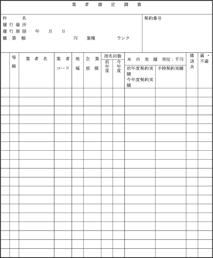 3 | 業者選定調書 | 第23条第1項 | 〃 |