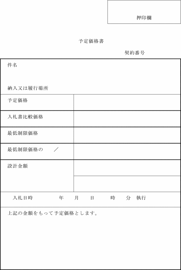 1 | 予定価格書 | 第13条第1項 | 工事・物件・委託・賃貸借共通 |