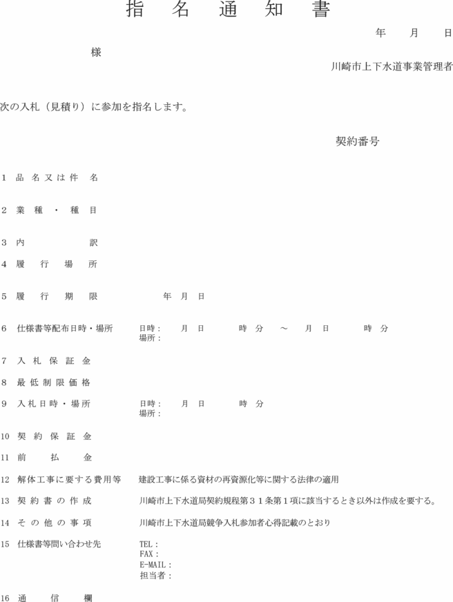 4 | 指名通知書 | 第23条第2項 | 〃 |