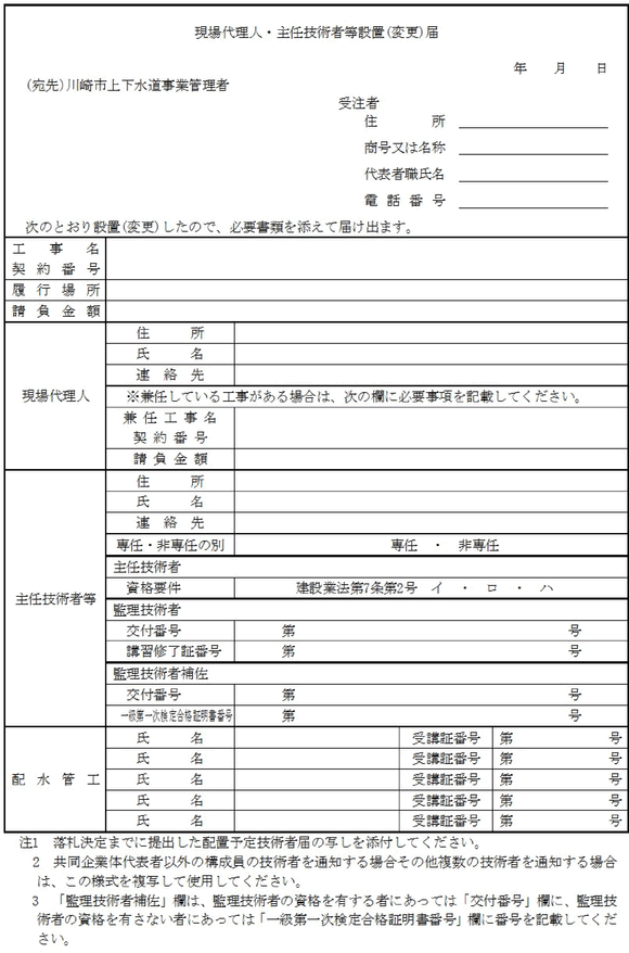 13 | 現場代理人・主任技術者等設置(変更)届 | 〃 | |