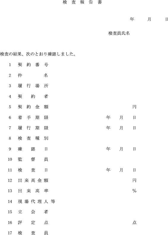 第14条 検査員は、完成検査終了後、直ちに厳正に工事成績の評定を行い工事成績評定書を作成し、検査課長に報告しなければならない。