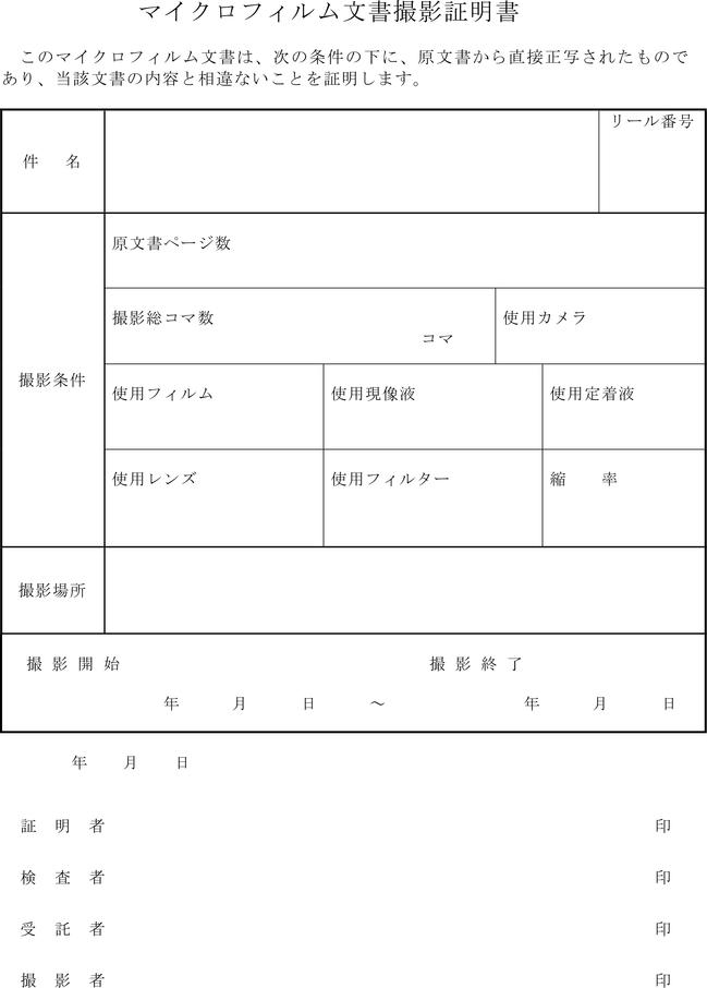 (4) 原文書 マイクロフィルムに撮影された元の公文書をいう。