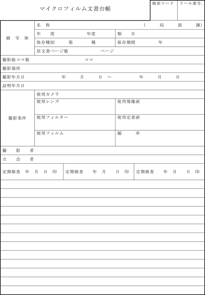 第8条 行政情報課長は、マイクロフィルム文書の保存状況について次による定期検査を行い、その結果をマイクロフィルム文書台帳に記入しなければならない。