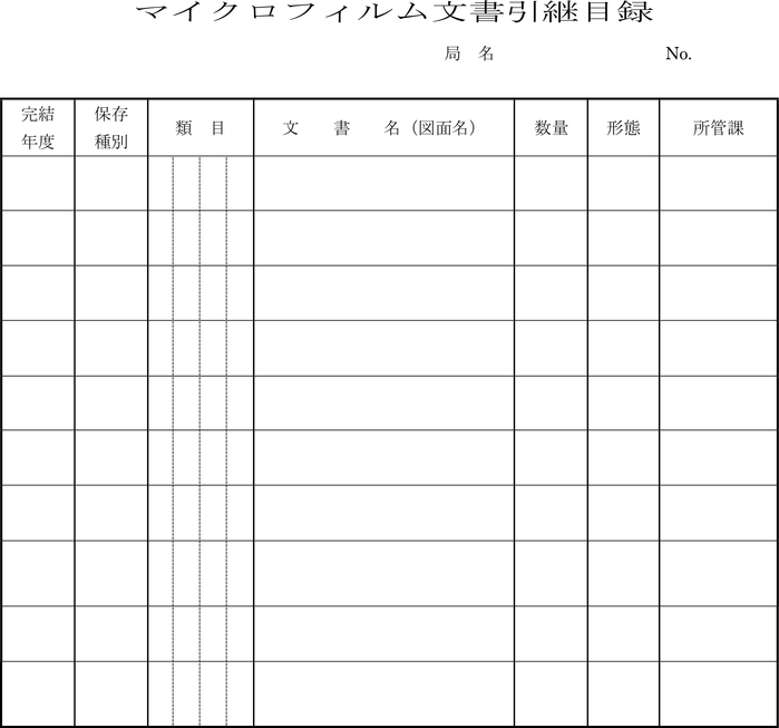第11条 行政情報課長は、マイクロフィルム文書をマイクロフィルム文書撮影後6箇月以内にマイクロフィルム文書引継目録(第6号様式)1部を添えて公文書館長に引き継がなければならない。ただし、当該6箇月を経過する日が原文書の完結の日の属する年度の翌々年度(暦年によるものにあっては、原文書の完結の日の属する年の翌々年。以下同じ。)の10月31日以前の日であるときは、当該翌々年度の10月31日までに引き継ぐものとする。