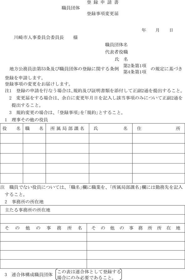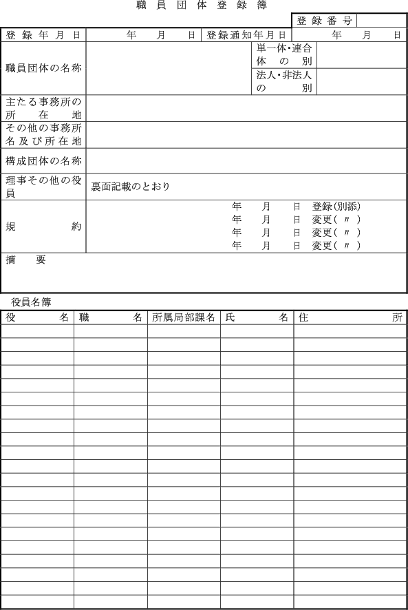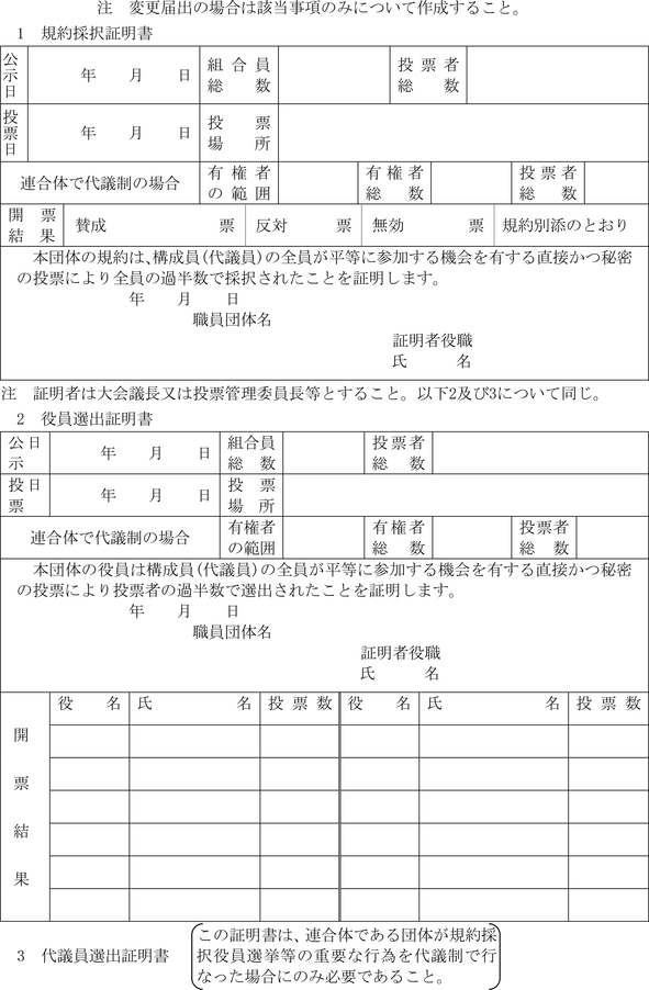 1 | 職員団体登録申請書 | 2条1項 |