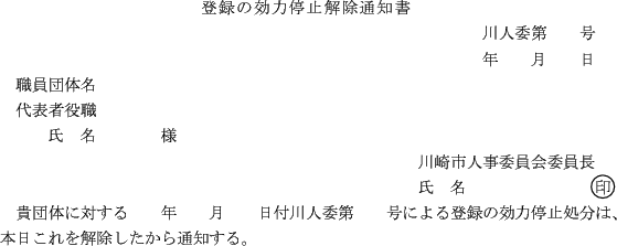 3 人事委員会が登録の効力を停止した職員団体についてその指定する期間内にこれを解除する旨の通知をする場合は、登録の効力停止解除通知書(第9号様式)によるものとする。