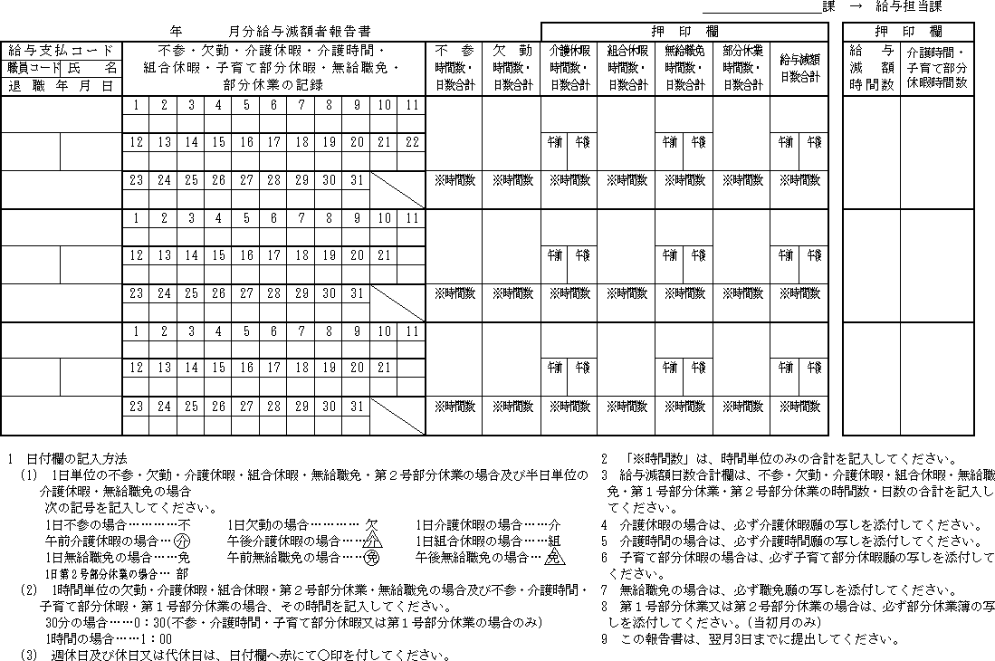 (3) 川崎市職員の勤務時間、休日、休暇等に関する条例(昭和34年川崎市条例第30号。以下「勤務時間条例」という。)第12条の2第3項(勤務時間条例第12条の3第3項、第12条の4第3項及び第12条の5第3項において準用する場合を含む。以下同じ。)の規定により給与を減額された場合