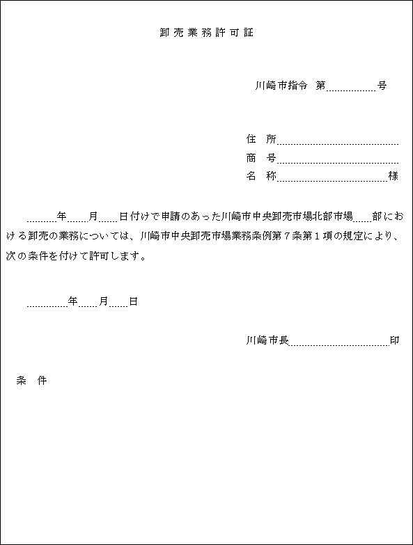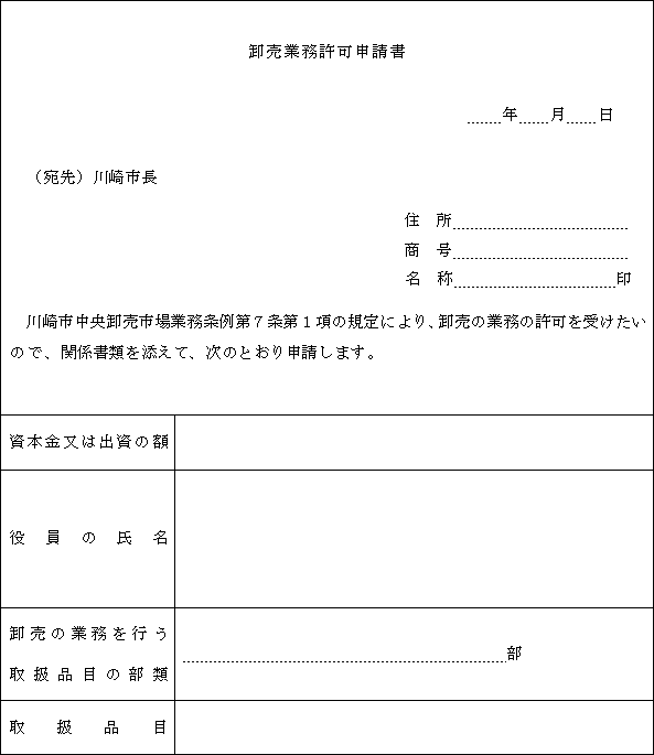 1 | 卸売業務許可申請書 | 第5条第1項 |