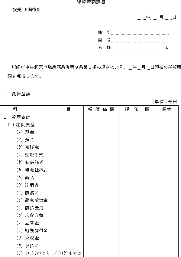 (9) 申請の日前30日以内の日現在における純資産額調書に準じた書面