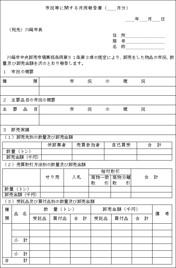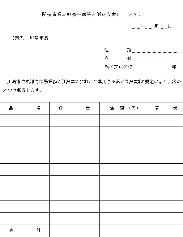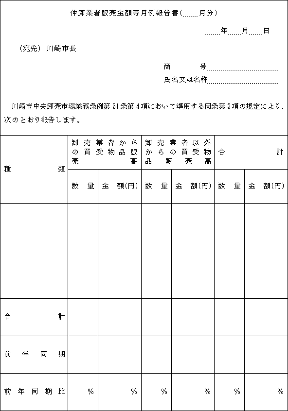 36 | 仲卸業者販売金額等月例報告書 | 第62条第5項 |