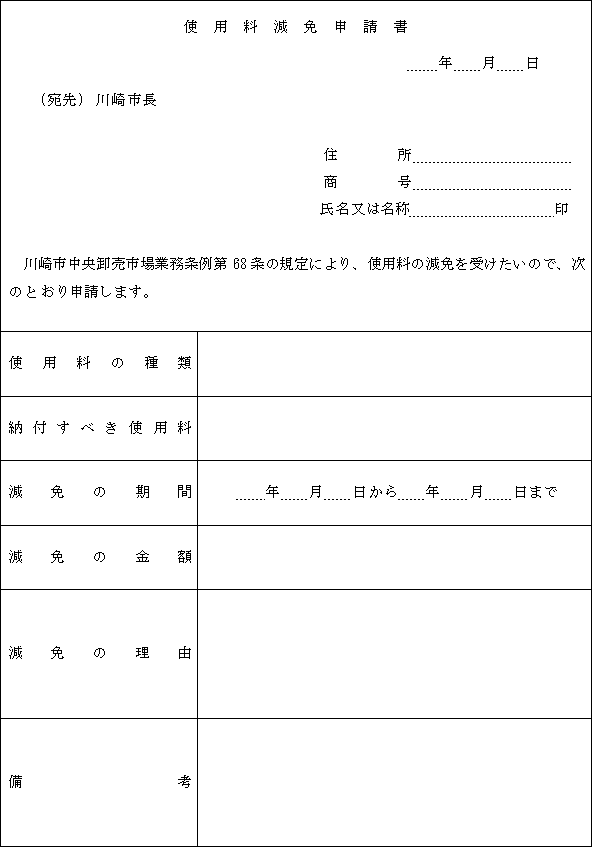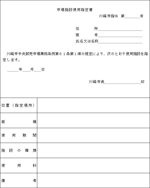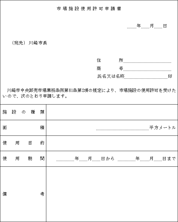 41 | 市場施設使用許可申請書 | 第76条第1項 |