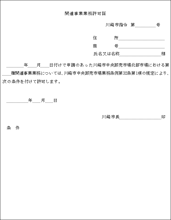 28 | 関連事業業務許可証 | 第38条第1項 |