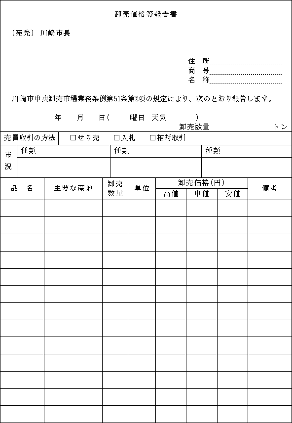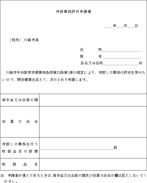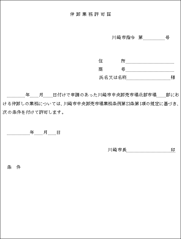13 | 仲卸業務許可申請書 | 第20条第1項 |