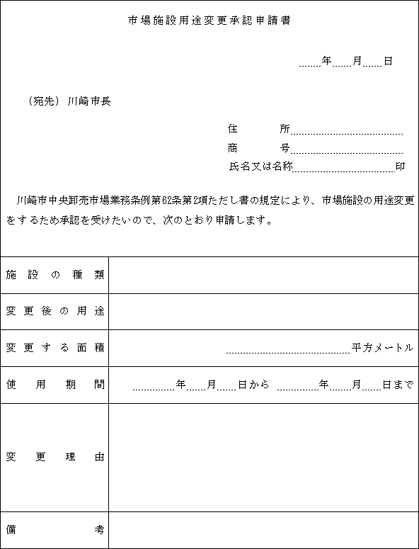 42 | 市場施設用途変更承認申請書 | 第78条 |