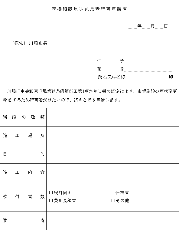 43 | 市場施設原状変更等許可申請書 | 第79条第1項 |