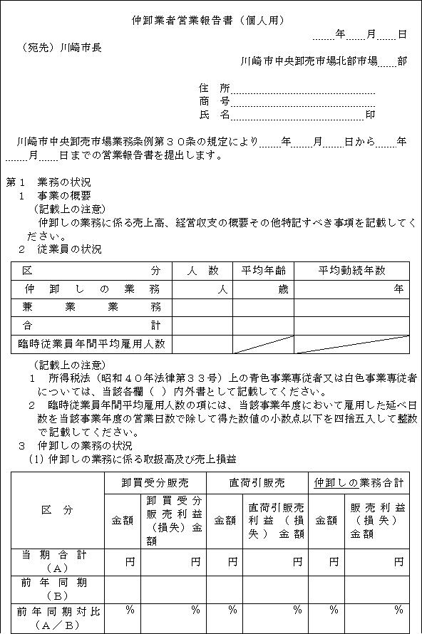 24 | 仲卸業者営業報告書(個人用) | 第30条第1項 第45条第1項 |