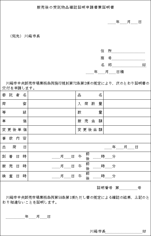 39 | 販売後の受託物品検査証明申請書兼証明書 | 第72条第2項 |