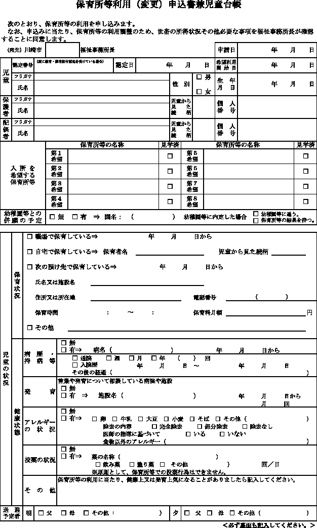 (3) 保育所等利用(変更)申込書兼児童台帳(第9号様式
