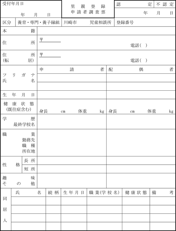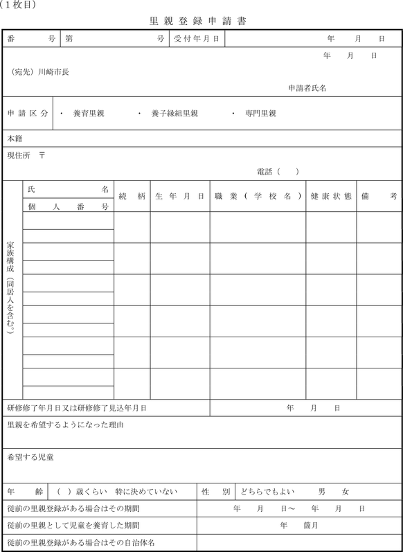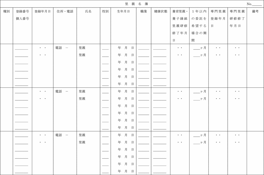 (4) 里親名簿(第5号様式