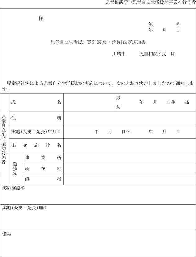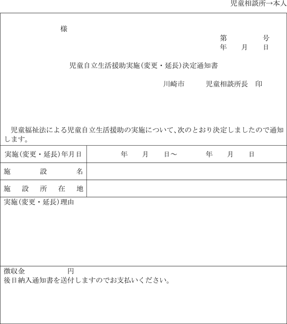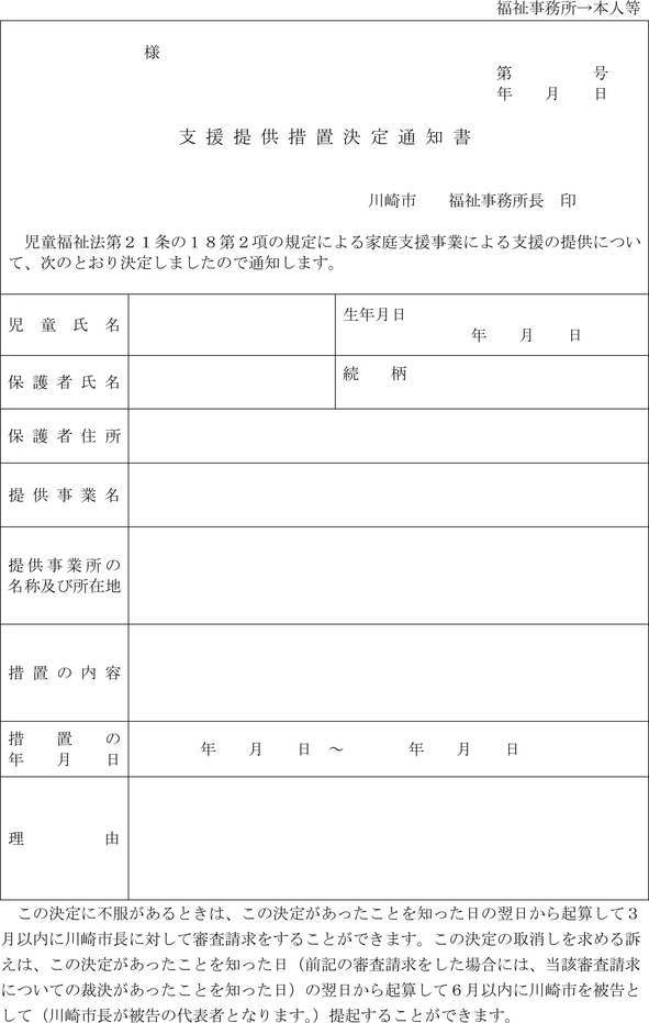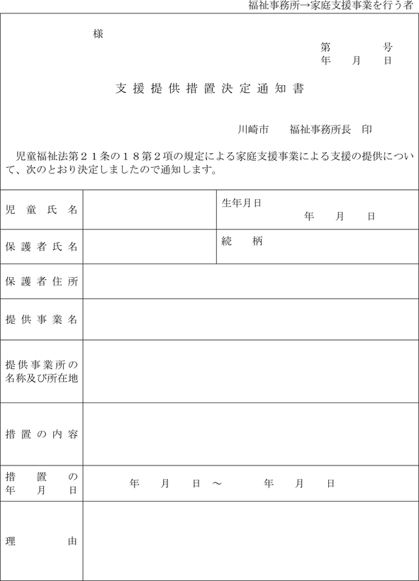 (家庭支援事業の支援提供の措置決定通知)