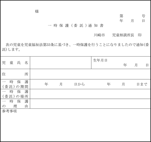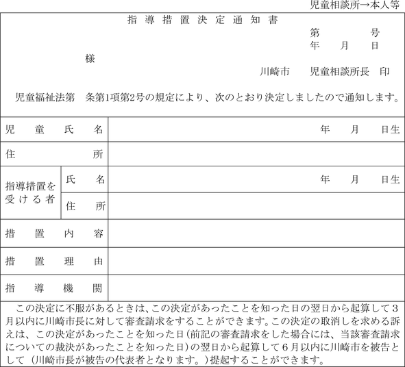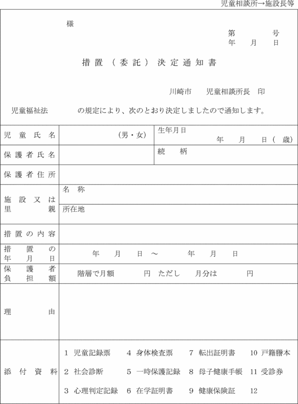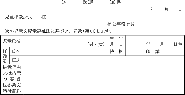 第7条の11 福祉事務所長は、法第21条の18第2項の規定による措置をとるときは、支援提供措置決定通知書(第15号の19様式)により家庭支援事業を行う者及び本人等に通知しなければならない。