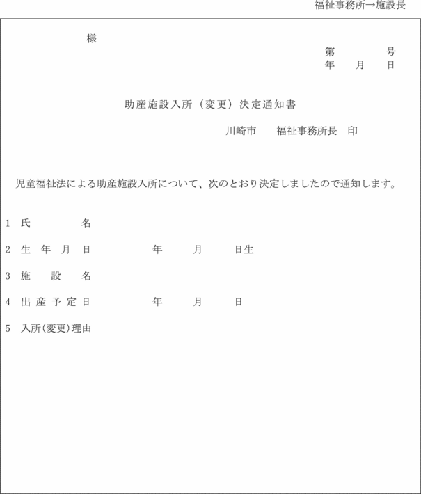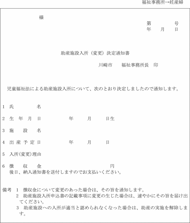 (助産施設等への入所決定通知等)