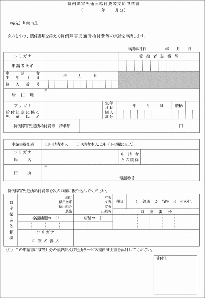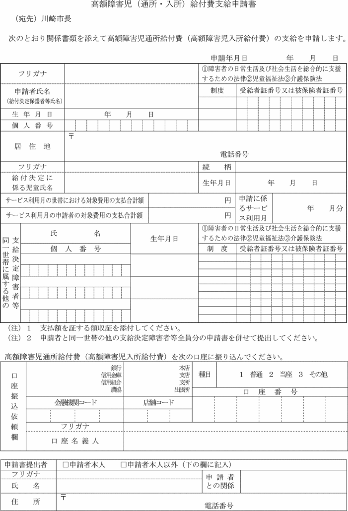 第7条の8 法第21条の5の12第1項の規定による高額障害児通所給付費の支給を受けようとする者は、高額障害児(通所・入所)給付費支給申請書(第15号の10様式)を市長に提出しなければならない。