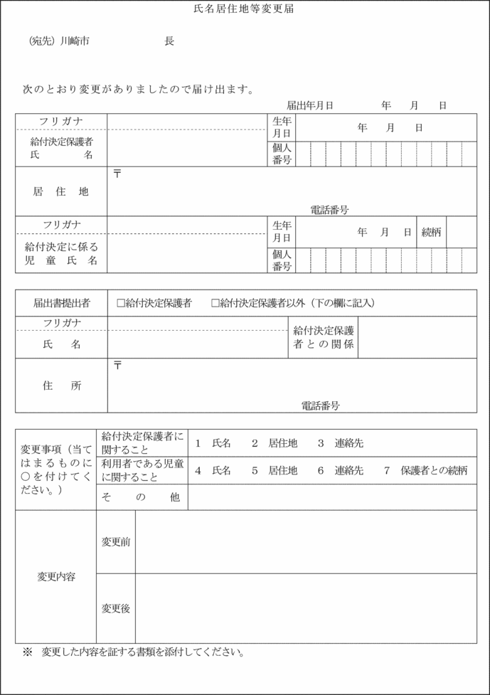 (氏名、居住地等の変更の届出)