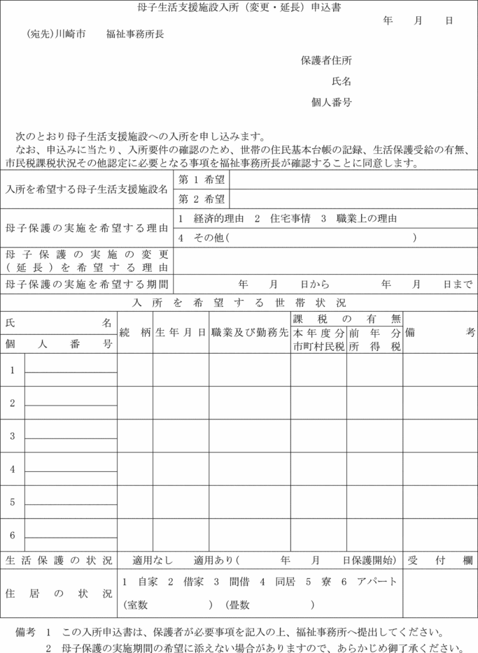 2 法第23条第2項に規定する母子生活支援施設への入所申込みは、母子生活支援施設入所(変更・延長)申込書(第17号様式)により行わなければならない。