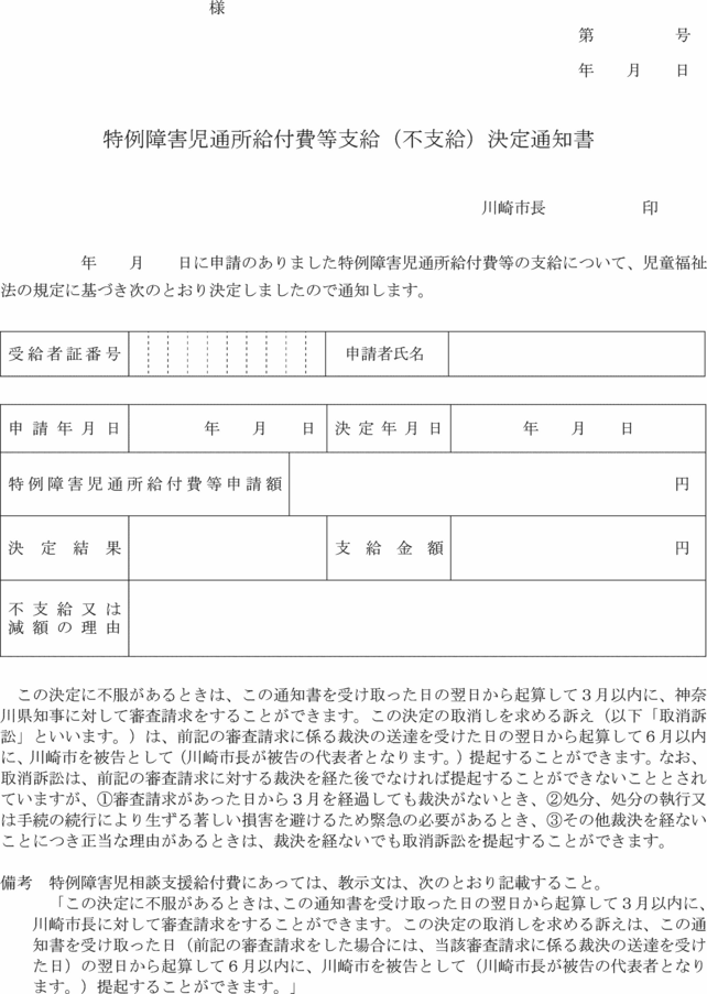 2 市長は、前項の支給の可否を決定したときは、特例障害児通所給付費等支給(不支給)決定通知書(第15号の2様式)により当該支給の申請をした者に通知するものとする。