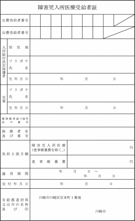 3 児童相談所長は、入所給付決定に係る障害児が法第24条の20第1項に規定する障害児入所医療を受ける者と認めたときは、当該申請をした者に対し、障害児入所医療受給者証(第20号の6様式)を交付するものとする。